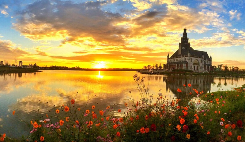 大丰荷兰花海欧风建筑美景